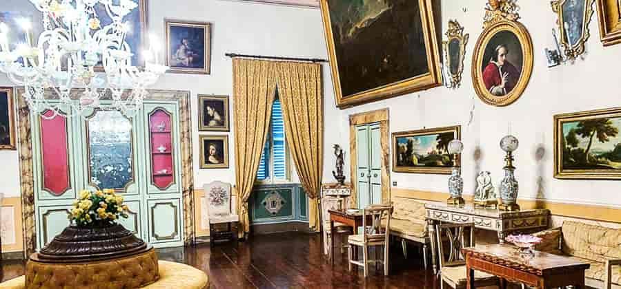 L'interno è articolato con falsi piani, scale, dislivelli, cortili. Di particolare interesse il Ritratto di Pio VIII, realizzato a figura intera da Vincenzo Camuccini (1771/1844); il busto di marmo del pontefice; una Portantina del ' 600; la Cappella, dove si conservano suppellettili sacre ed arredi liturgici; il Salone della Musica il cui soffitto, unico esempio nelle Marche, è formato da nove cupole ottagonali, tutte finemente decorate a grottesche, così realizzate per consentire un'acustica perfetta; la Camera del Papa; la Biblioteca.