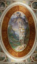All'interno della sontuosa dimora lavorarono i migliori pittori e architetti dell’epoca. I temi degli affreschi furono ispirati dal letterato Annibal Caro e realizzati da Taddeo Zuccari, poi sostituito, alla sua morte (1566), dal fratello Federico Zuccari, da Onofrio Panvinio e da Fulvio Orsini.