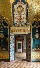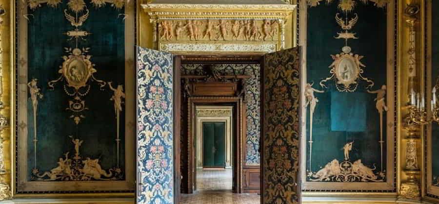 Molto ricchi sono gli interni, di cui si segnalano: la "Sala di Flora", detta anche salottino azzurro, tappezzato in velluto di seta, con specchiere, decorazioni e sculture di Lodovico Pogliaghi, e affrescato da Mosè Bianchi; la "Sala di Prometeo", cosiddetta per il grande camino neorinascimentale sormontato dalla scultura di Prometeo sempre del Pogliaghi; il Salone da ballo affrescato alle pareti con "Il Ballo" da Giuseppe Bertini e, nel soffitto, da Luigi Cavenaghi. Il palazzo ha ospitato per tutto il Novecento la sede della Famiglia Meneghina, celebre circolo privato milanese.
