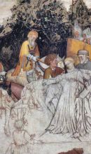 Sul alto opposto rispetto alla scala si trova la Loggia di Romolo e Remo, con affreschi di Gentile da Fabriano sulla vita dei leggendari fondatori di Roma ai quali, i Trinci, volevano idealmente ricollegarsi. La vicina cappella è ricoperta di affreschi di Ottaviano Nelli datati al 1424.