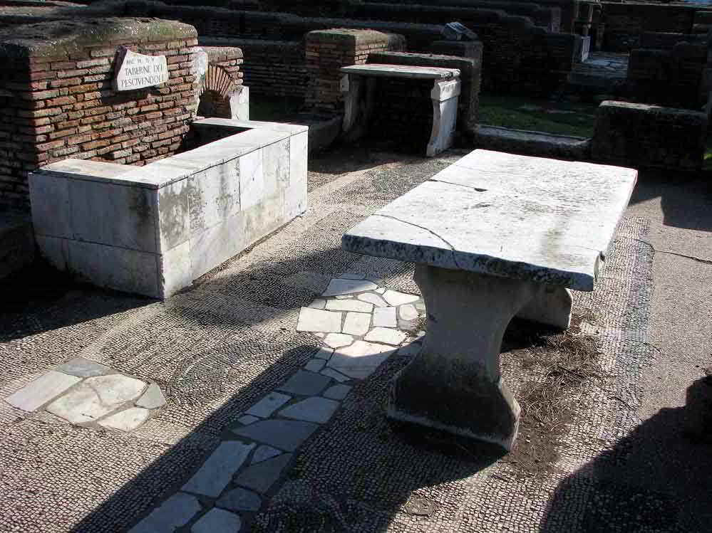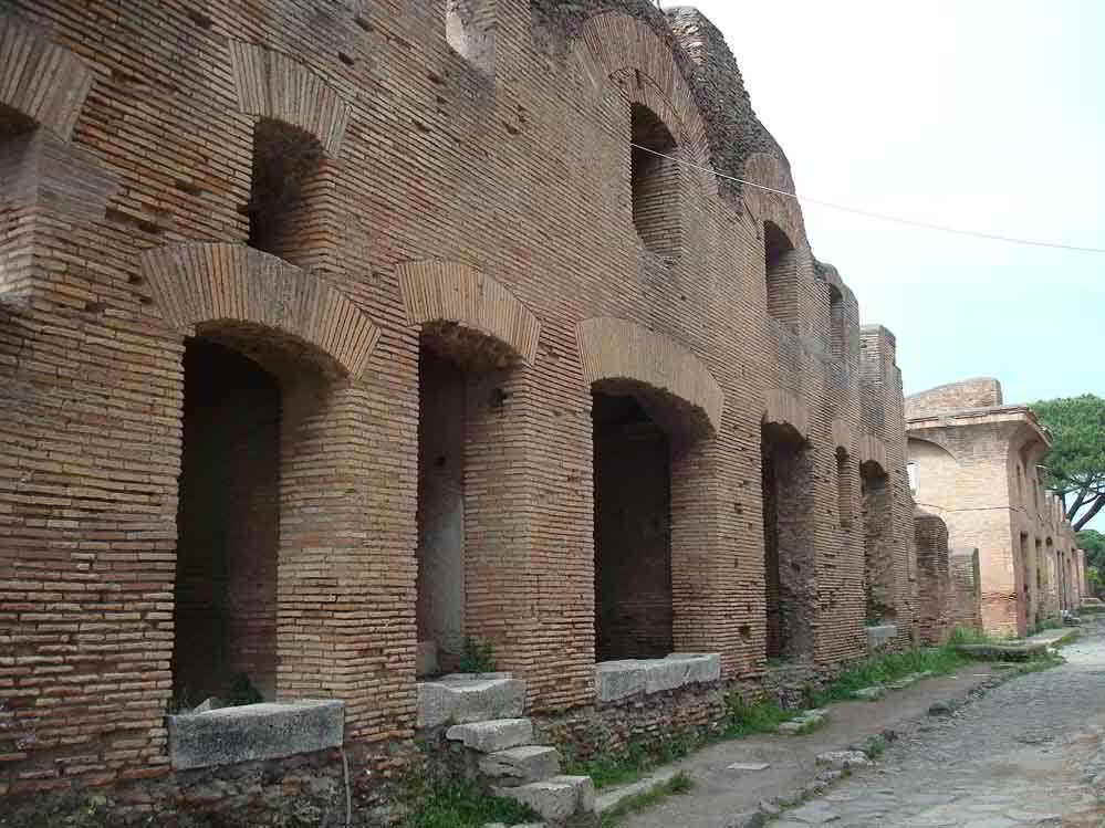 Prima colonia romana fondata nel VII secolo a.C. dal re di Roma Anco Marzio, secondo il racconto tradizionale, si sviluppò particolarmente in epoca imperiale come centro commerciale e portuale, strettamente legato all'annona (approvvigionamento di grano per la capitale). Rimase centro residenziale e amministrativo dopo la costruzione dei porti di Claudio e di Traiano, ma decadde rapidamente in epoca tardo-antica, sostituita dal centro portuale di Porto, e fu abbandonata in epoca alto-medievale.