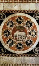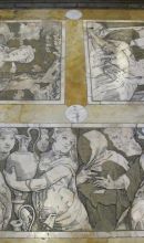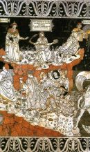 Il pavimento del Duomo di Siena è uno dei più vasti e pregiati esempi di un complesso di tarsie marmoree, un progetto decorativo che è durato sei secoli, dal Trecento all'Ottocento. Come per la fabbrica della cattedrale, anche il pavimento si intreccia indissolubilmente con la storia stessa della città e della sua arte: per questo nei secoli i senesi non hanno lesinato risorse per la sua creazione prima e per la sua conservazione poi. Composto da più di sessanta scene, è generalmente coperto nelle zone di maggior frequentazione da fogli di masonite, tranne una volta all'anno, per circa due mesi, tra la fine di agosto e la fine di ottobre.