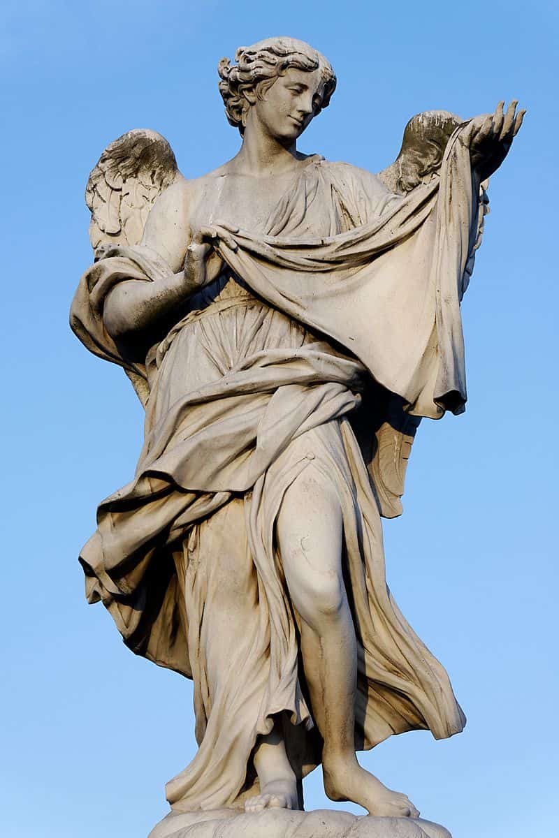 Nel 1535 papa Clemente VII fece collocare all'ingresso del ponte le statue di san Pietro e san Paolo di Paolo Romano a cui furono successivamente aggiunte altre statue raffiguranti i quattro evangelisti ed i patriarchi Adamo, Noè, Abramo e Mosè. Nel 1669 papa Clemente IX fece realizzare un nuovo parapetto, disegnato dal Bernini, sopra il quale furono collocate dieci statue raffiguranti Angeli che portano gli strumenti della Passione, scolpite da allievi di Bernini sotto la sua direzione. Delle statue precedenti rimangono solo quelle di Pietro e Paolo.