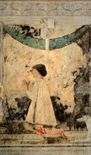 Nella prima cappella a destra spiccano gli angeli reggi cortina di Agostino di Duccio mentre nell'attigua Cella delle Reliquie è custodito un capolavoro di Piero della Francesca: Sigismondo Malatesta inginocchiato davanti a san Sigismondo, suo santo patrono, raffigurato sotto le sembianze dell'imperatore Sigismondo d'Ungheria. Fu quest'ultimo di ritorno da Roma dove era stato incoronato dal papa Imperatore del Sacro romano impero a nominarlo cavaliere. Il Malatesta è accompagnato dai propri levrieri e attraverso una finestra circolare è mostrato Castel Sismondo. L'affresco datato 1451 era collocato originariamente all'interno della sagrestia di destra.