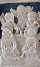 Nella Cappella di San Michele Arcangelo si trova un crocefisso su tavola di Giotto (1312), resto della preesistente chiesa trecentesca. Nella Cappella dei Giochi infantili vi sono dei deliziosi bassorilievi con angeli e putti mentre nella cappella della Madonna dell'Acqua si trovano dei pregiati pilastri che rappresentano profeti e sibille. Sul lato sinistro del tempio è stata realizzata l'arca degli Antenati e dei Discendenti con i bassorilievi di Agostino di Duccio con Minerva tra una schiera di eroi e il Trionfo di Scipione l'Africano. Un dipinto del Vasari rappresentante San Francesco che riceve le stimmate è collocato sopra l'altare del presbiterio.