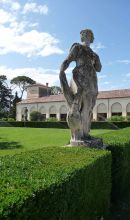 La villa è incorniciata da due lunghe barchesse colonnate che ospitavano originariamente le strutture per le attività agricole, secondo un progetto di struttura produttiva analogo a quello di Villa Badoer e di buona parte dei progetti palladiani di villa. L'ingresso si trova al termine di un lungo percorso lastricato di grandi pietre squadrate.