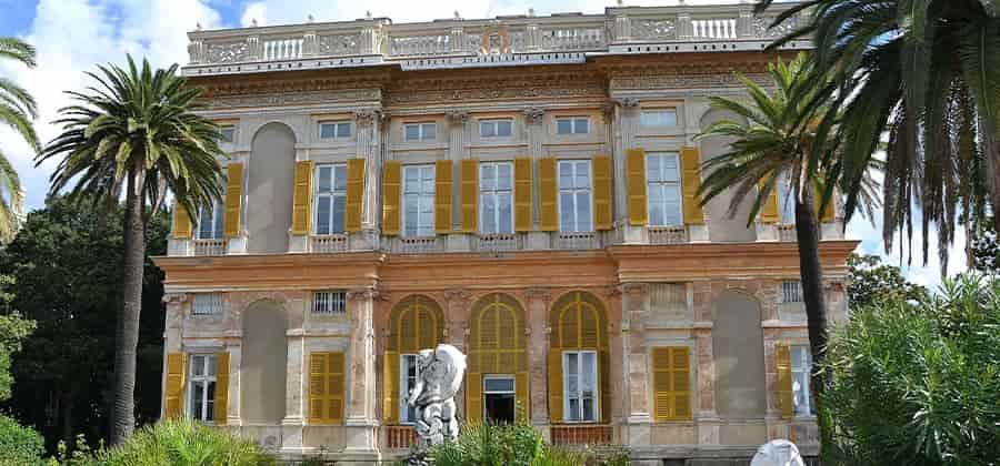 Villa delle Peschiere segna una maturazione rispetto a villa Giustiniani Cambiaso (Albaro), la prima opera sicura dell'Alessi a Genova. Il progetto alessiano di Villa delle Peschiere risolve il rapporto con il giardino per mezzo di due ingressi di uguale importanza da entrambi il lati, realizzando un'organica continuità nello sviluppo dei vani centrali e nel rapporto con la scala. La facciata sud è più riccamente decorata, con una composizione geometrica e un sontuoso impianto decorativo a lesene ioniche e corinzie, con cornicione e balaustra. Gli ordini architettonici furono proiettati nel paesaggio del parco, con una serie di terrazzamenti scenografici e una serie di serliane che accompagna il visitatore in un crescendo trionfale, dal basso verso l'alto, dalla città alla villa.