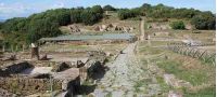 L'edificio di forma ellittica presenta misure particolarmente ridotte (asse maggiore 38m, asse minore 27m) rispetto a quelle di monumenti simili riscontrabili in altre città romane. Gli accessi sono quattro e diversi per tipologia: quelli situati sull'asse maggiore E-O sono scoperti e delimitati da lunghi muri, mentre i restanti due sono fiancheggiati da murature di minore lunghezza e sono coperti da volte a botte. Lateralmente ai due ingressi E-O si trovano due piccoli vani con copertura a volta a crociera: la tecnica muraria in opus reticulatum con testate a blocchetti regolari suggerisce una datazione agli inizi del I secolo d.C., oltretutto convalidata dal rinvenimento di ceramica sigillata aretina.