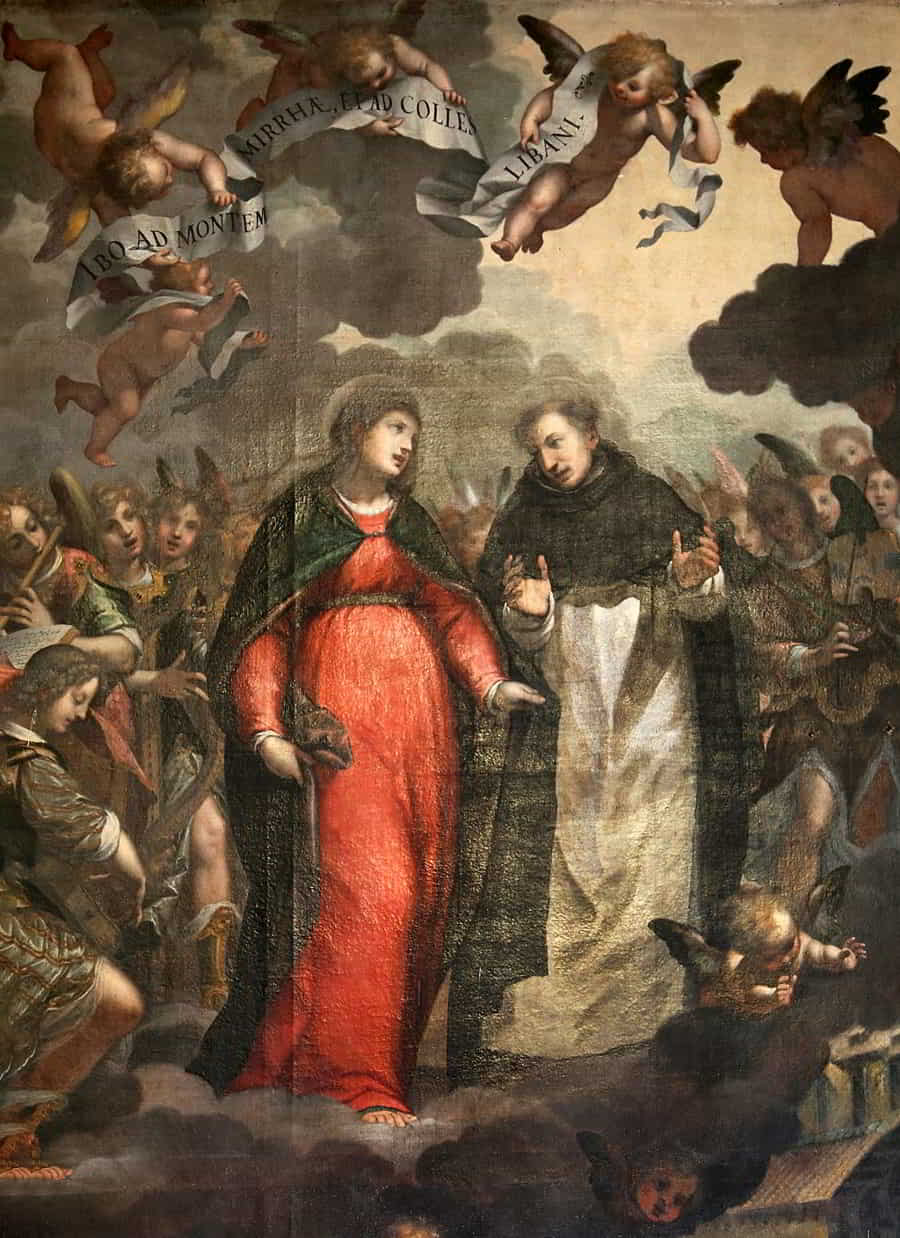 Il primo nucleo del convento risale alla metà del XIII secolo mentre la chiesa è della fine del secolo. Al chiostro grande si unì nel Trecento il portico della Maddalena, con affreschi di Giovanni Martinelli (1655 ca.), e nel Cinquecento un altro chiostro, detto di Fra' Paolino. Sono di quest'ultimo la Crocifissione (1533), l'Adorazione dei Magi (1528-1532) e il Matrimonio mistico di santa Caterina (1534-1536).