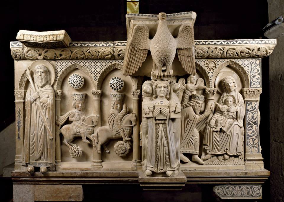 L'interno del duomo è a tre navate e presenta trasversalmente uno sbarramento marmoreo formato da lastre di marmo rosso riquadrate da marmo bianco decorato, al quale si appoggia senza soluzione di continuità il magnifico pulpito marmoreo, opera dei maestri comacini, che viene attribuito alla scuola di Guido Bigarelli da Como (XIII secolo). Il pulpito è sorretto da quattro colonne, due delle quali poggiano su due leoni i quali sovrastano: l'uno un drago l'altro un uomo. Le colonne posteriori poggiano l'una sul pavimento e l'altra sulla schiena di un vecchio curvo.