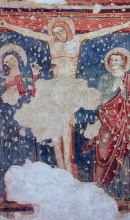 Conserva una delle testimonianze pittoriche più antiche della città. All’esterno sono visibili materiali di spoglio di età romana ed un affresco datato XIII-XIV secolo. L’interno è ad aula unica presenta decorazioni pittoriche riferibili ad un arco temporale compreso tra XII e XVI secolo. Particolarmente interessante è l’affresco del Martirio di Thomas Becket da Canterbury, datato al primo quarto del XIII secolo; esso si riferisce alla controversia tra l’arcivescovo ed il Cancelliere del Regno di Inghilterra Enrico II, ma si riallaccia ad un fatto di storia contemporanea locale: la lotta tra papato ed impero (Gregorio IX e Federico II) per il possesso del Ducato di Spoleto.