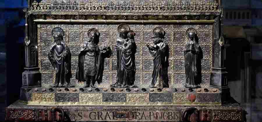Tra le opere più antiche e preziose è da menzionare un cammeo romano del I secolo, con una montatura in oro, pietre e perle, ed anche il dittico d'avorio tardoromano di Anicio Petronio Probo, (406) reimpiegato ad uso liturgico. Stefano Mossettaz, monumento sepolcrale di Tommaso II di Savoia.