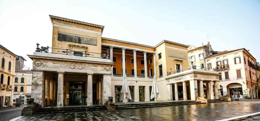 Il Caffè Pedrocchi, uno dei più importanti caffè europei e uno dei pochi superstiti tra gli antichi caffè italiani, si eleva proprio nella centralissima piazza, tra Palazzo Moroni, la sede del Comune, ed il Bo, sede dell'Università, nell'angolo asimmetrico rimasto dalla demolizione di antichi edifici. Nello scavo delle fondamenta e della ghiacciaia vennero portate alla luce grandiose colonne, ora al Museo Civico, e diversi marmi furono usati per la realizzazione del caffè. La sua splendida architettura, che mescola lo stile neoclassico a quello gotico veneziano, con richiami esotici egizi e cineserie, molto in voga nell'ottocento, rispecchia il clima romantico dell'epoca e l'estro dell'architetto Jappelli.