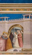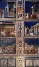 Le figure hanno un volume ancora più reale che ad Assisi, avvolte da ampi mantelli attraverso cui si capisce la modellazione dei corpi sottostanti. Anche le architetture di sfondo, una delle caratteristiche più evidenti di Giotto, non presentano più incertezze e concessioni allo sfondo irreale. Sono chiare e reali, proporzionate con le figure che interagiscono con esse. Per esempio nella Presentazione della Vergine al tempio vi sono più forme combinate che creano un notevole gioco di vuoti e pieni, con zone aperte in piena luce e recessi coperti in una fitta ombra. Anche la Cacciata dei mercanti dal tempio presenta un'articolata costruzione tridimensionale (eloquente è il gesto minaccioso del Cristo infuriato che alza il pugno), oppure nella scena delle Nozze di Cana.