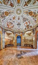 Nelle sale attigue si aprono ariosi paesaggi attribuiti a Lambert Sustris, artista originario di Amsterdam ma operante, a partire dal terzo decennio del XVI secolo, a Roma, Venezia e Padova; è ipotizzabile che gli stucchi siamo opera dei figli del Falconetto e soprattutto di Tiziano Minio, scultore attivo nell'Odeo negli anni compresi fra il 1534 e il 1537.