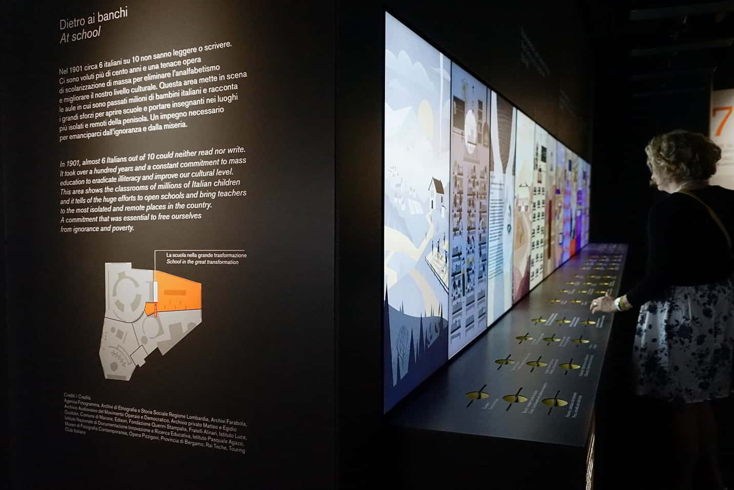Il Museo M9 è allestito nei primi due piani del principale edificio del nuovo complesso architettonico e l'esposizione prevede il racconto multimediale della storia d'Italia del XX secolo, attraverso un percorso fra materiali digitali, tra cui circa 6.000 fotografie, 820 filmati montati in una videoproiezione complessiva di oltre dieci ore, 500 oggetti iconografici (manifesti, periodici, quotidiani e materiale grigio) e 400 file audio, provenienti da 150 archivi di interesse storico (tra cui Teche Rai, Istituto Luce, Fondazione Treccani, Centro Storico Fiat, Archivi Farabola, Fondazione archivio audiovisivo del movimento operaio e democratico, Archivio storico dell'ENI e Fondazione FS Italiane) e a disposizione del pubblico attraverso 60 installazioni multimediali e interattive.