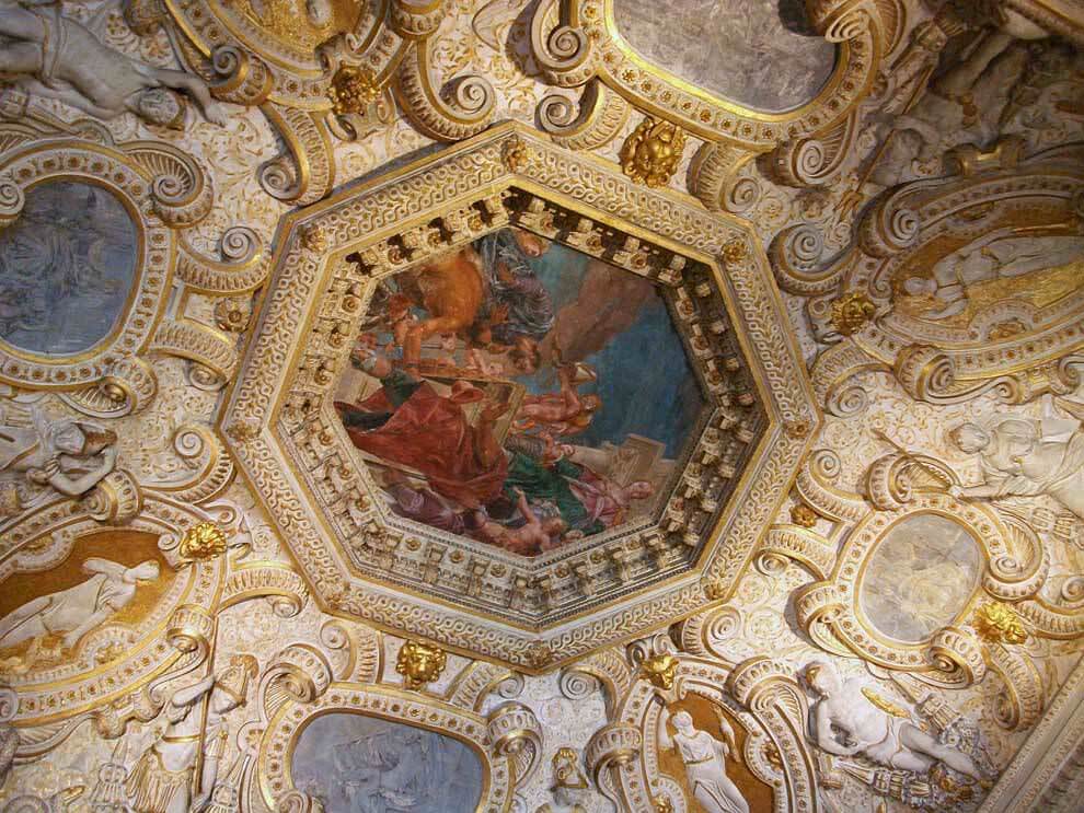 Gli interni, oggi parzialmente privati delle opere che un tempo li decoravano, conservano ancora un'ampia pinacoteca, che comprende opere realizzate dai più famosi maestri veneziani, tra i quali Jacopo e Domenico Tintoretto, Tiziano Vecellio, Francesco Bassano, Paolo Veronese, Giambattista Zelotti, Jacopo Palma il Giovane, Andrea Vicentino e Antonio Vassilacchi.
