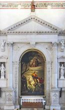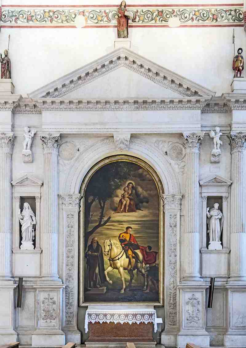 La cappella Pellegrini è soprattutto celebre perché contiene quello che è considerato il capolavoro di Pisanello, il San Giorgio e la principessa, affrescato tra il 1433 ed il 1438 sulla parete esterna sopra l'arco di accesso.